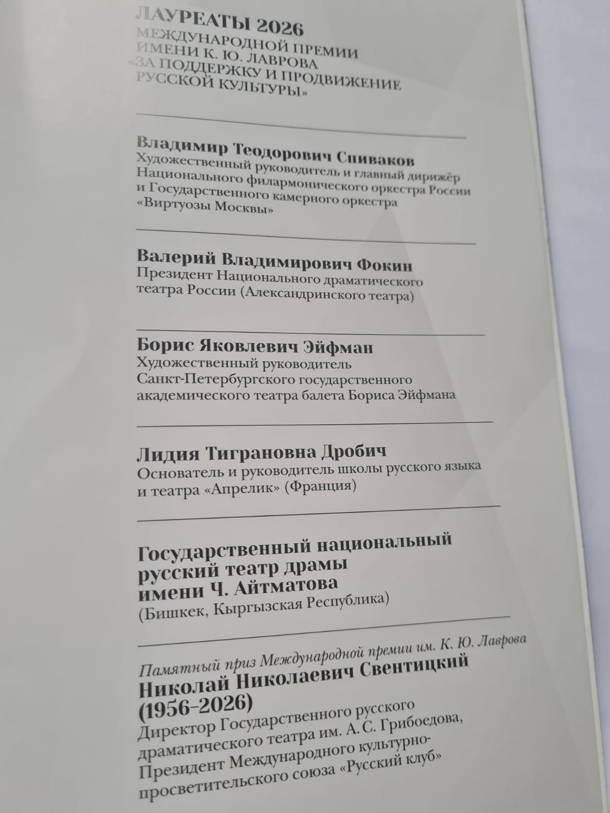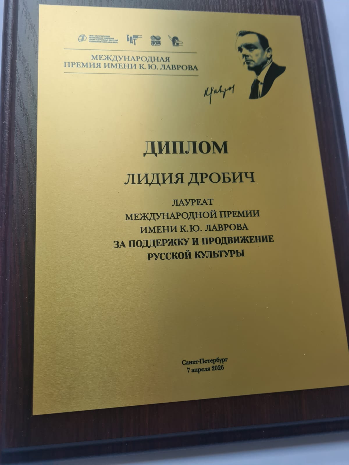 7 АПРЕЛЯ. Санкт-Петербург, Таврический дворец . Вручение Международный Премии им.К.Ю.Лаврова бессменному основателю и руководителю школы русского языка и театра «АПРЕЛИК «(Франция) Л.Дробич.