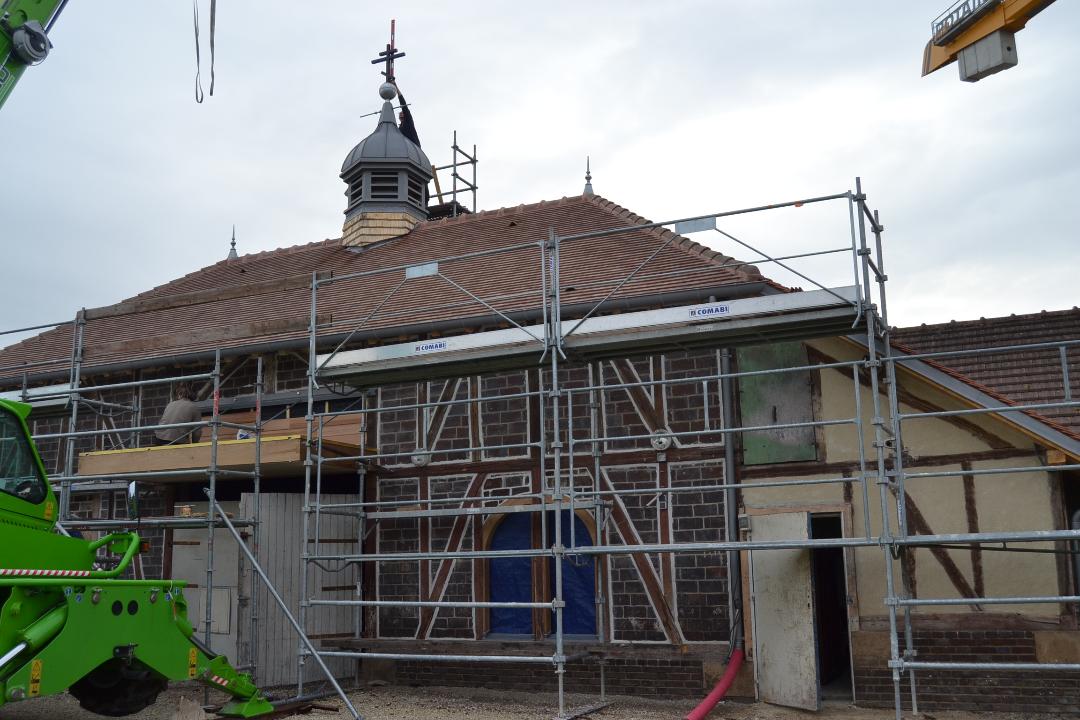 За пять лет нам удалось собрать около 120 000 евро. Этого хватило на нотариуса, административные расходы и внешние работы – пришлось обратиться к предприятиям, признанным архитектором министерством культуры из-за того что здание охраняется государством. За все внутренние работы мы возьмёмся сами – наш новый староста строитель. Пока работы не будут завершены – электричество, теплоизоляция, туалет, … мы не получим разрешения служить в нашей церкви, на которой уже установлен купол в местном стиле, но с православным крестом.