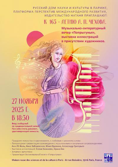 Музыкально-литературный вечер и выставка иллюстраций к 165-летию со дня рождения А. П. Чехова в РДНК в Париже