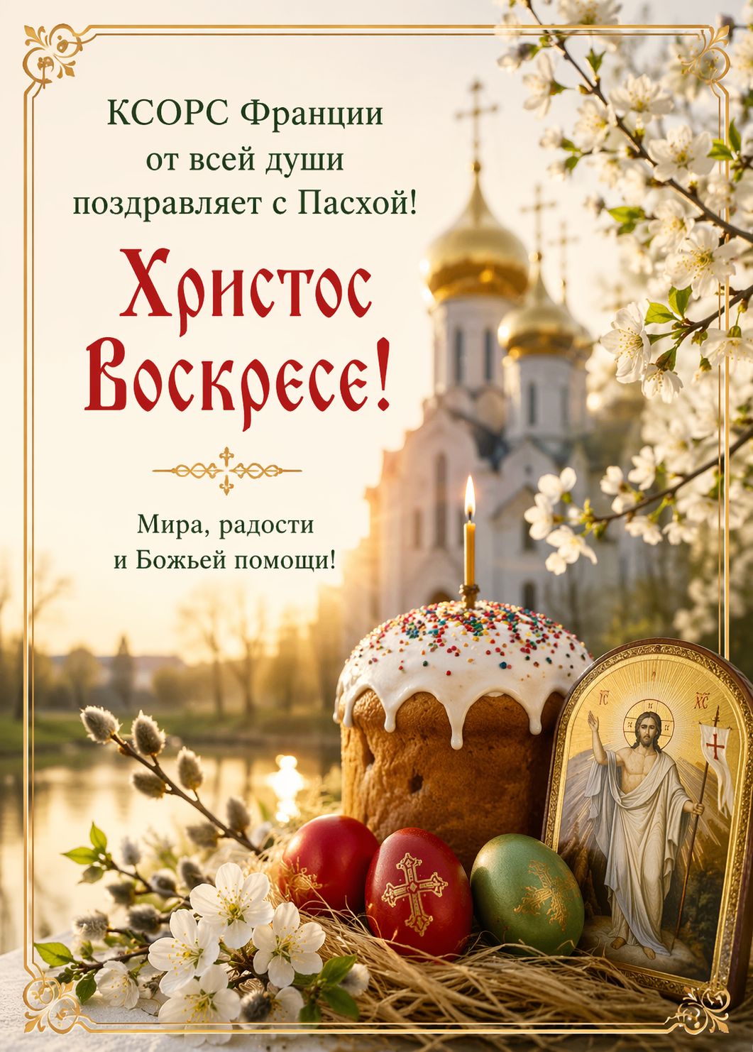 Координационный Совет Организаций Российских Соотечественников во Франции сердечно поздравляет вас со Светлым Христовым Воскресением!