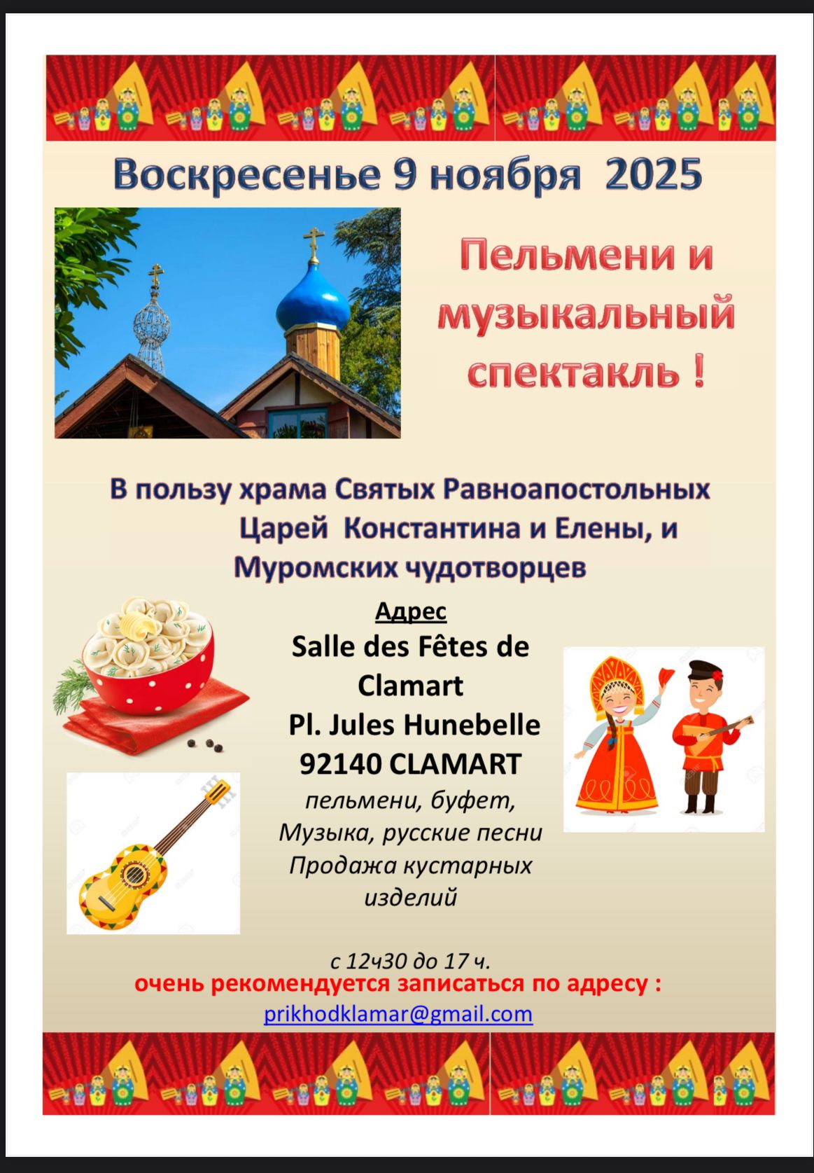 Приглашаем на традиционный благотворительный праздник православной общины в г.Кламар (Clamart) — осенние пельмени 🥟!