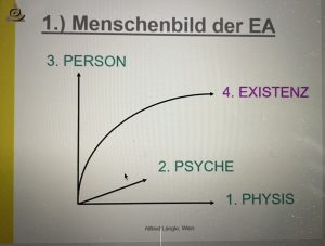 Мы можем все сказанное обобщить в нескольких словах, в них содержится понимание бытия человека. Быть человеком в экзистенциальной перспективе — означает быть под вопросом. Каждая ситуация, каждое мгновение — это вопрос, который обращён ко мне. Например, вопрос к вам: понимаю ли я это то, что было сказано? Или если у меня появился вопрос к Альфриду Лэнгле, то хочу ли я его задать, чтобы прояснить то, о чём говорилось.