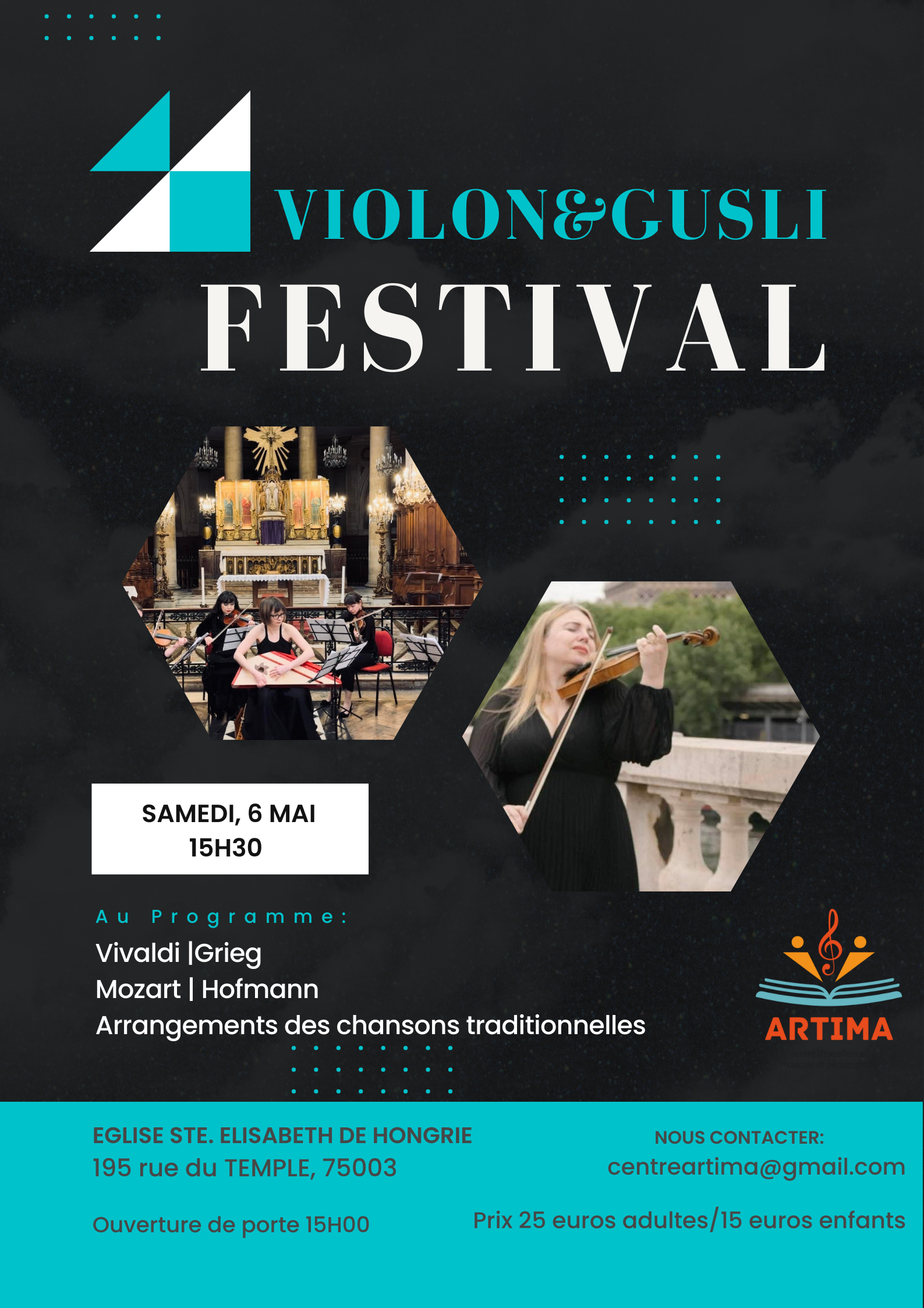 И для еще большего сюрприза, вы услышите ансамбль скрипок с Марией Кристиани, Давидом Пивазяном, Александрой Бианки, Ириной Чагай, состав музыкантов, редко встречающаяся во Франции.